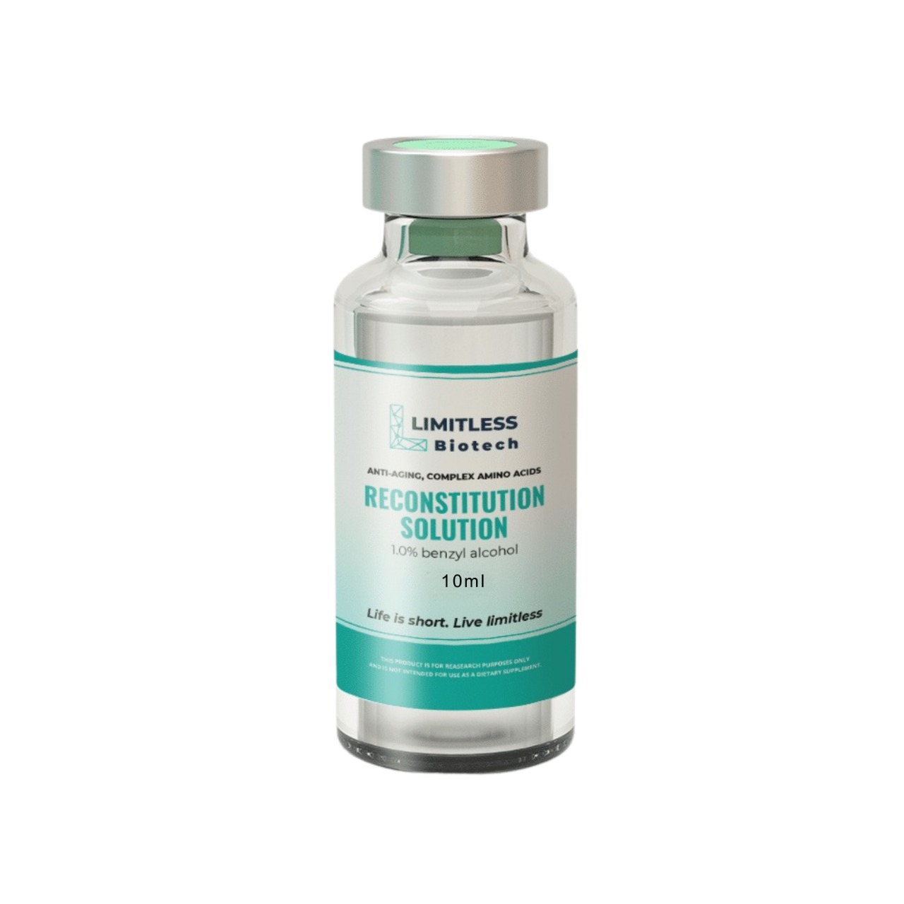 Reconstitution Solution, commonly referred to as BAC Water, is a high-purity, sterile and bacteriostatic solution formulated exclusively for research and laboratory use. This premium-grade preparation consists of sterile, filtered water combined with 0.9% benzyl alcohol, offering both sterility and extended shelf life. Designed to support the safe and reliable reconstitution of peptides and other research compounds, this solution helps maintain integrity and performance in experimental settings.